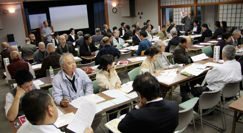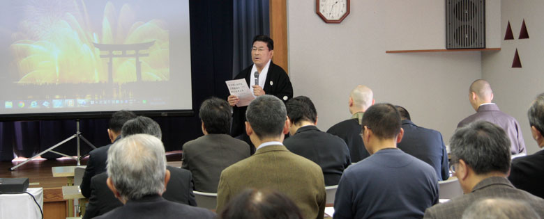 東日本大震災で、住職を務められる岩手県大槌町吉里吉里の曹洞宗吉祥寺の法事会館を、3月11日から4月末まで約250人の避難所として開放。毎朝、町内4か所の遺体安置所にて読経を続け、4月末には、大槌町における犠牲者の49日忌法要を主催。その後も初盆、1周忌など合同追悼法要を行い、今年3月には釜石仏教会として大槌町浄土宗大念寺で行われた三回忌兼彼岸法要を主催されたご体験を基に、災害時の宗教者の参考になるとても貴重なお話でした。